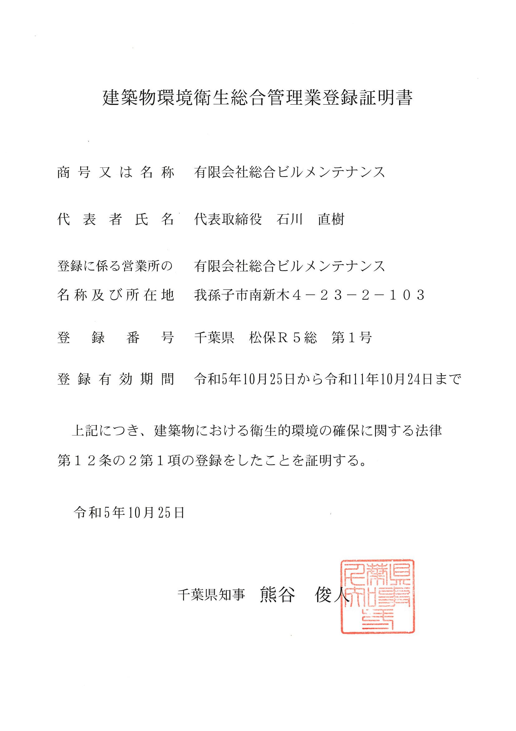 千葉・全国ビルメンテナンス協会会員 有限会社総合ビルメンテナンス
